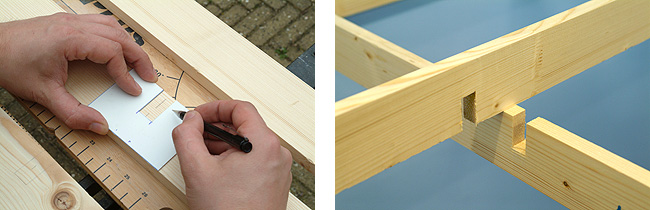 De Lage Zij wordt gebouwd volgens de open bouwmethode. Een sterk frame van houten latten vormt de basis waarop later de rails en het landschap wordt bevestigd. De latten worden ingezaagd op de kruisverbindingen en elke verbinding wordt gelijmd met de sneldrogende PU-Tix.