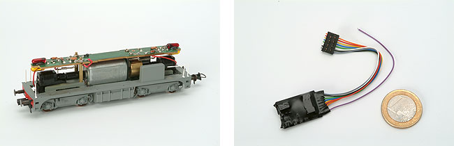 De loc zit al behoorlijk vol en het viel niet mee om een passende decoder te vinden. Uiteindelijk heb ik gekozen voor de LokPilot DCC, het kleinere broertje van de bekende LokSound en LokPilot decoder. De LokPilot DCC is alleen geschikt voor DCC en iets gunstiger geprijsd. Natuurlijk is de decoder voorzien van alle snufjes die je van een moderne decoder mag verwachten, zoals lastregeling (cruise control), instelbare motorregeling en twee extra functies.