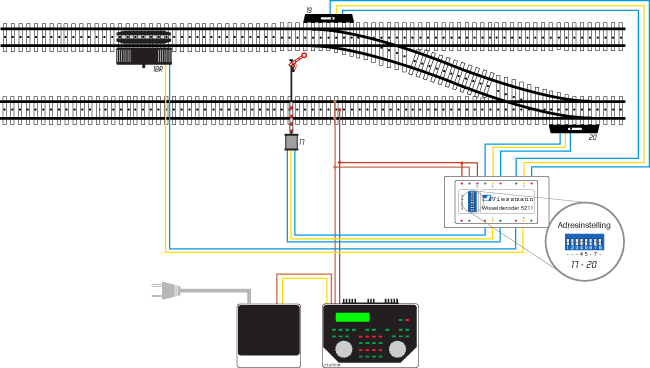 Wissels en seinen worden aangesloten op een wisseldecoder of een schakeldecoder. Elk wissel krijgt weer een uniek nummer. Via de centrale kun je de wissels apart verzetten, maar ook een complete wisselstraat stellen. Bij de meeste systemen worden de wissels op dezelfde stroomkring aangesloten als de rails. In theorie heb je zo aan twee draadjes genoeg. De praktijk is echter toch wat anders.