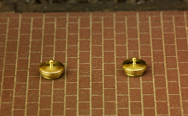 De meeste onderdelen maak je zelf gemakkelijk uit een stukje messing (profiel of plat). Andere vind je min of meer bij nulspecialisten als Schnellenkamp. Voor de zandvuldoppen heb ik hulp gehad van Jaap Dekker en Jan den Haan. Jan heeft twee prachtige doppen voor me gedraaid uit messing staf op de draaibank van Jaap.