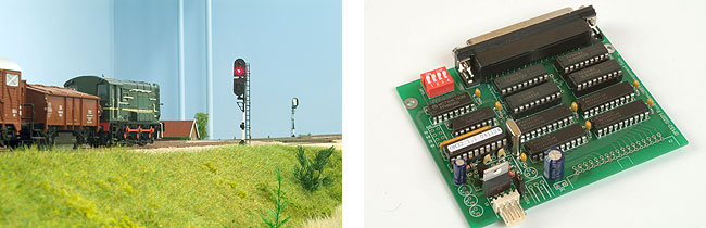 De lichtseinen worden aangestuurd met de OM32 Serial van Leon van Perlo. De modules zijn direct aangesloten op de tweede seriële poort van de computer. Het besturingsprogramma Koploper zorgt ervoor dat ze naadloos samenwerken met de rest van de baan.