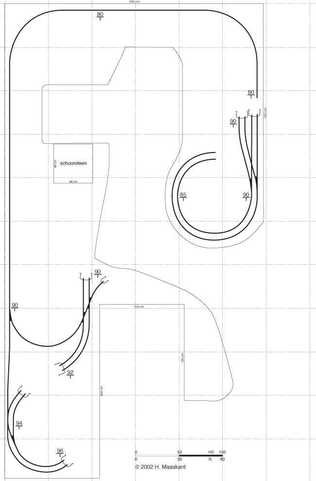 Op het tweede niveau bevinden zich alle verborgen sporen tussen niveau 1 (het station) en niveau 3 (het schaduwstation). Let vooral op het stukje enkelspoor dat het mogelijk maakt om treinen op twee plaatsen op te laten duiken aan de westkant van het station.